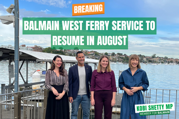 Balmain West ferry service to resume on the 18th of August
